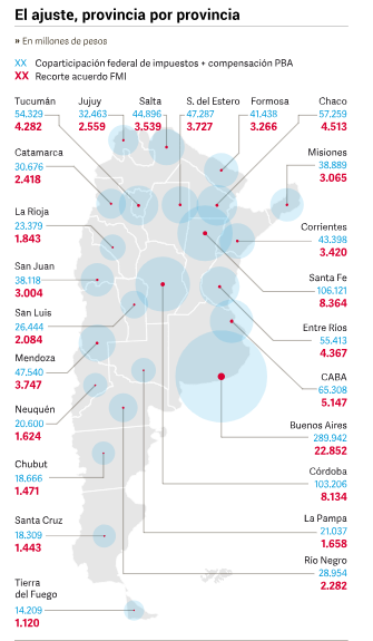 En total, las provincias deberán afrontar un recorte de gastos de $ 100.000 millones. La Casa Rosada pretende que el esfuerzo se distribuya según los índices de coparticipación.
