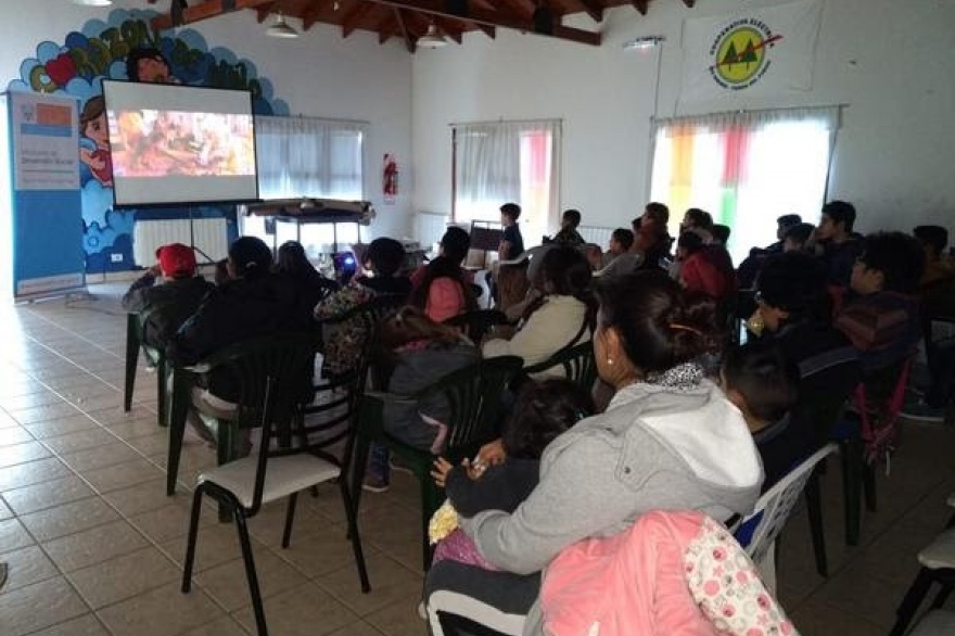 El Ministerio de Desarrollo Social llevó a cabo este sábado una nueva edición del ciclo "Cine en tu Barrio" en el SUM Corazón de Niño del Barrio Chacra Il de la ciudad de Río Grande.