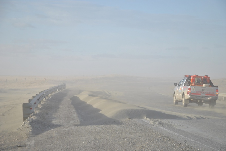 "Ayer lo que hicimos fue una intervención rápida para limpiar la calzada por la acumulación del polvillo que proviene de la laguna, pero esta mañana arrancamos a trabajar a las 8 de la mañana, con maquinaria pesada, para desarmar los morros de arena que se forman", explicó.