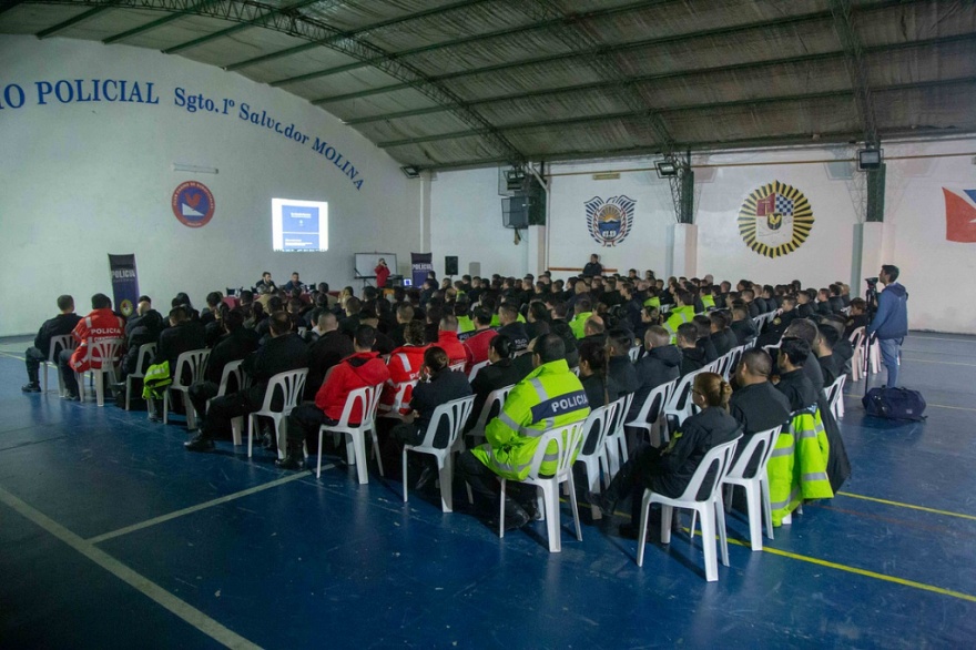 La capacitación, organizada entre el Gobierno y la Fundación Grooming Argentina, se dictó en el gimnasio de la Escuela de Policías de Ushuaia. Participaron más de doscientos efectivos, quienes recibieron información sobre prevención y abordaje en casos de grooming, un delito informático que tiene como víctimas a personas menores de edad.