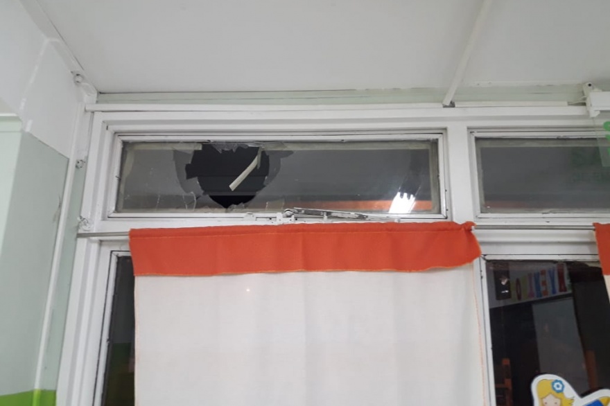 En la escuela 9 de la capital fueguina, vándalos arrojaron piedras y rompieron dos vidrios de la institución, afectando a dos aulas; y además forzaron la puerta de la salida de emergencia.