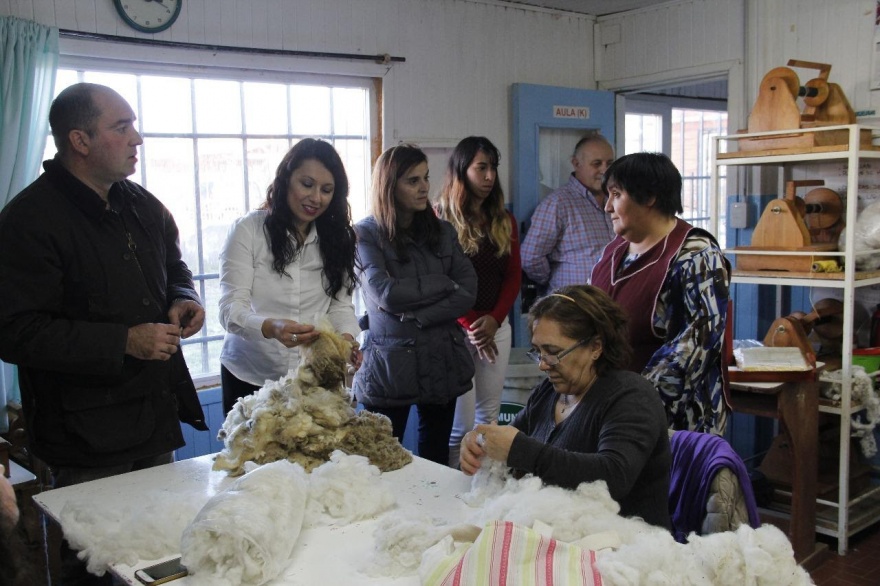 La secretaria de Fortalecimiento Institucional Patricia Vara, junto al presidente de la Asociación Rural Tierra del Fuego Fernando Gliubich, visitaron el taller de hilanderas que funciona en el Centro de Formación Laboral “Manuel Belgrano” de Río Grande para observar el trabajo que realizan.