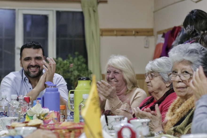 El intendente de Ushuaia compartió el viernes una merienda en el centro de jubilados Kaupén de Ushuaia con quienes participan del taller Girando en Palabras que llevan adelante las licenciadas Cristina Nieva y Natalia Sanchez de la Dirección de Adultos Mayores de la Municipalidad.