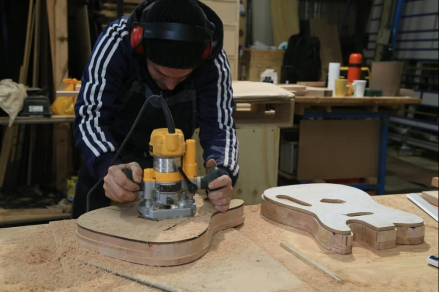 Y detalla que la primera de las capacitaciones, a cargo de Pipo Nazaro, culminará el viernes con la presentación de ocho guitarras y dos bajos hechos con madera de lenga.