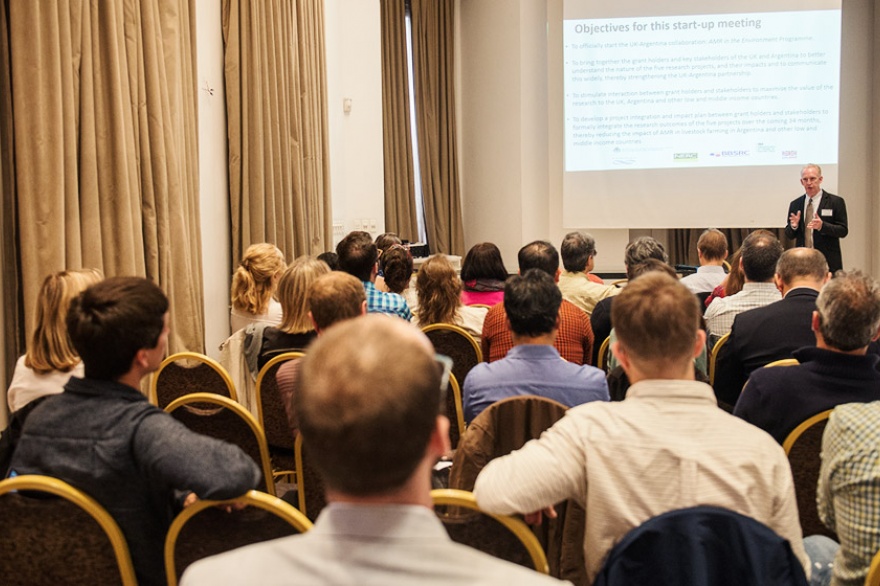 Desde ayer, y en una jornada que se extenderá hasta mañana, se realizó un encuentro en Buenos Aires entre investigadores argentinos y británicos. Allí se presentaron cinco proyectos seleccionados para su financiación el año pasado, que involucran a diferentes grupos del Servicio Nacional de Sanidad y Calidad Agroalimentaria (SENASA), Instituto Nacional de Tecnología Agropecuaria (INTA), Administración Nacional de Laboratorios e Institutos de Salud “Dr. Carlos C. Malbrán” (ANLIS) y el CONICET, así como también a universidades nacionales como la Universidad Nacional de La Plata la Universidad Nacional de Córdoba la Universidad de Buenos Aires (UBA) y la Universidad de Centro de la Provincia de Buenos Aires.