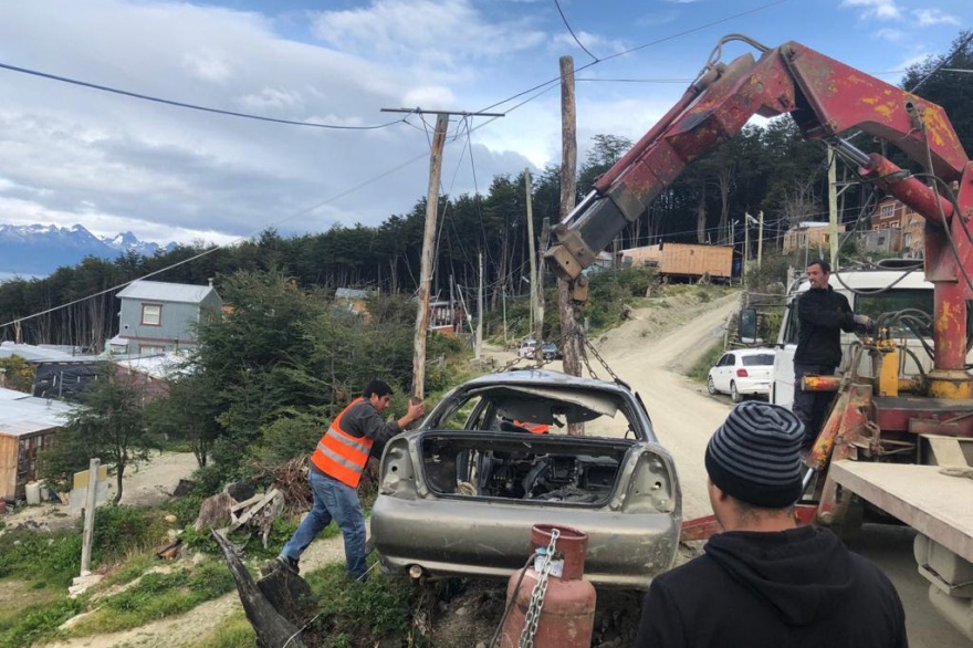 En Ushuaia, la Municipalidad continúa retirando chatarra abandonada
