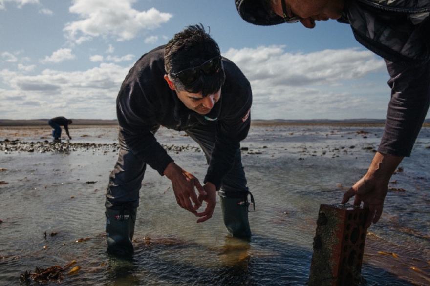 Un grupo de científicos realizan diversos muestreos en el borde costero del Estrecho de Magallanes, donde existe una verdadera selva de macroalgas que posee más de 40 hectáreas de extensión y es indetectable para los satélites. Solamente es posible verlo cuando hay marea baja.