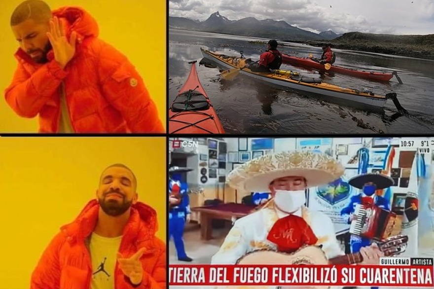 A través de sus redes sociales, kayakistas de Ushuaia reclaman al Gobierno que se autorice la navegación deportiva, y eligieron hacerlo con un meme, ironizando sobre la reciente habilitación de serenatas de mariachis. "Seguimos esperando la habilitación de nuestro deporte al aire libre con protocolos ya presentados en Prefectura Naval Argentina", señalaron.