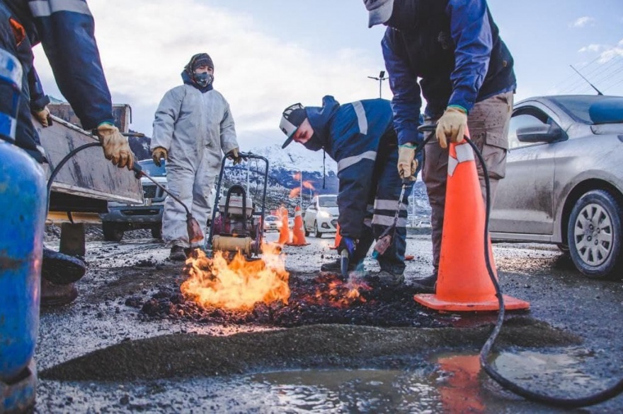 La Municipalidad de Ushuaia llevó adelante trabajos de bacheo y reparación de la calzada en la rotonda de ingreso al barrio de Andorra, al registrarse temperaturas sobre cero y encontrándose despejado el sector de la nieve acumulada durante las últimas precipitaciones.