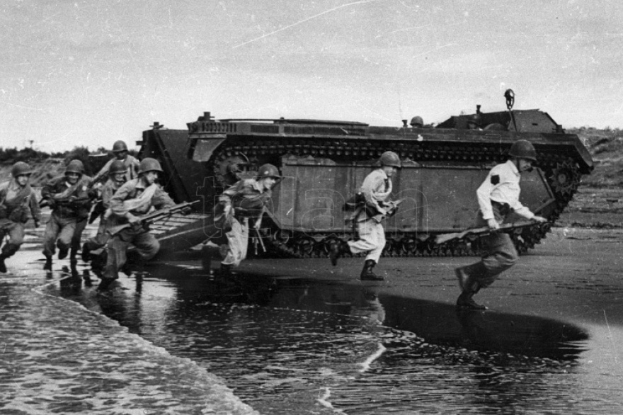 El 2 de abril de 1982 comandos anfibios de la Armada, tropas de la Infantería de Marina y efectivos del Regimiento 25 del Ejército desembarcaron en Puerto Argentino, interrumpiendo 149 años de ilegítima posesión británica sobre el archipiélago y otros territorios del Atlántico Sur.