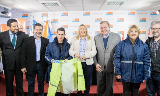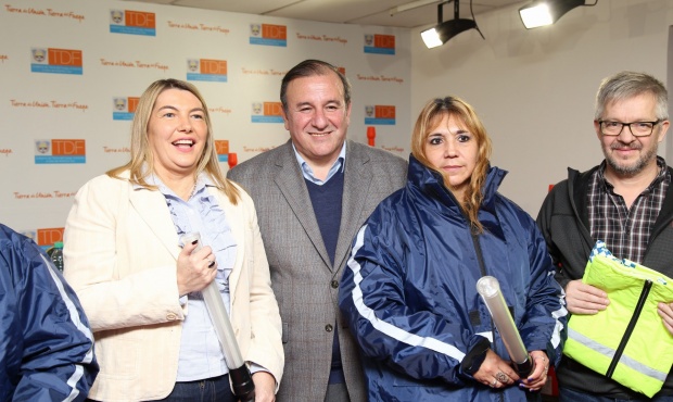 La gobernadora Rosana Bertone encabezó el acto de entrega de equipamiento y vehículos al personal de la Dirección Provincial de Seguridad Vial, por parte de la Agencia Nacional de Seguridad Vial, consistente en 39 camperas, 10 bastones lumínicos, 30 balizas reflectantes, una camioneta Chevrolet Meriva y una Ford Ranger.