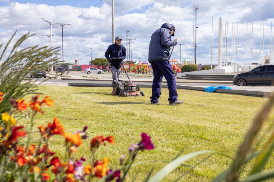 Desde el Municipio informaron que durante esta temporada se llevan adelante trabajos de embellecimiento urbano en distintos puntos de la ciudad “con el objetivo de poner en valor los espacios públicos que disfrutan las y los vecinos”.