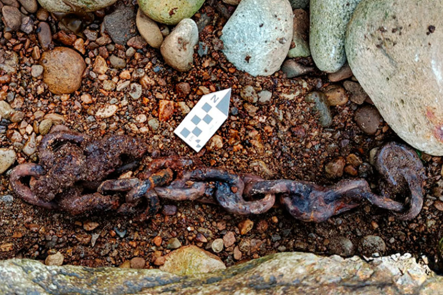 “En particular, encontramos un objeto muy interesante, un pescante, que es una estructura de hierro que funciona justamente para elevar los botes para que no queden en el agua y no se golpeen contra las rocas en caso de marejada o bien simplemente para repararlos”, señala Landa. En esa zona también encontraron las estructuras del primer presidio y de un cuartel para la marinería.