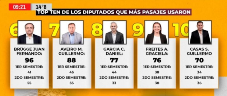 La información fue difundida en un programa de análisis político de A24 y replicada por el medio Infofueguina, donde se expone el ranking de diputados nacionales según la cantidad de tramos de transporte utilizados con fondos del Congreso.