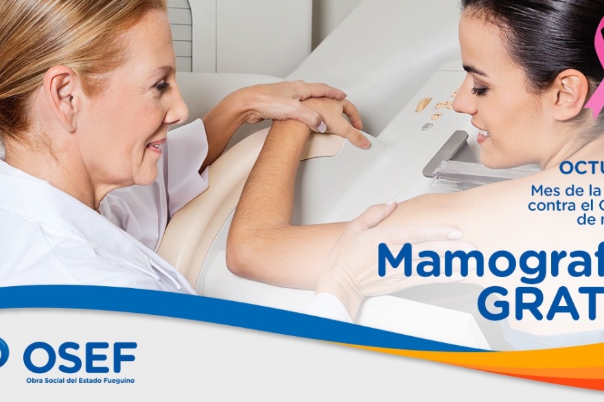 Al conmemorarse el mes de la Lucha contra el Cáncer de Mama, la Obra Social del Estado Fueguino (OSEF) anunció que otorgará a sus afiliadas mayores de 35 años una orden para la realización gratuita de una mamografía. Este estudio permite el diagnóstico precoz de esta enfermedad. Además, la Obra Social apoyará la campaña de prevención iluminando durante octubre todos sus edificios con luz rosa, el color que identifica la lucha contra el cáncer de mama.