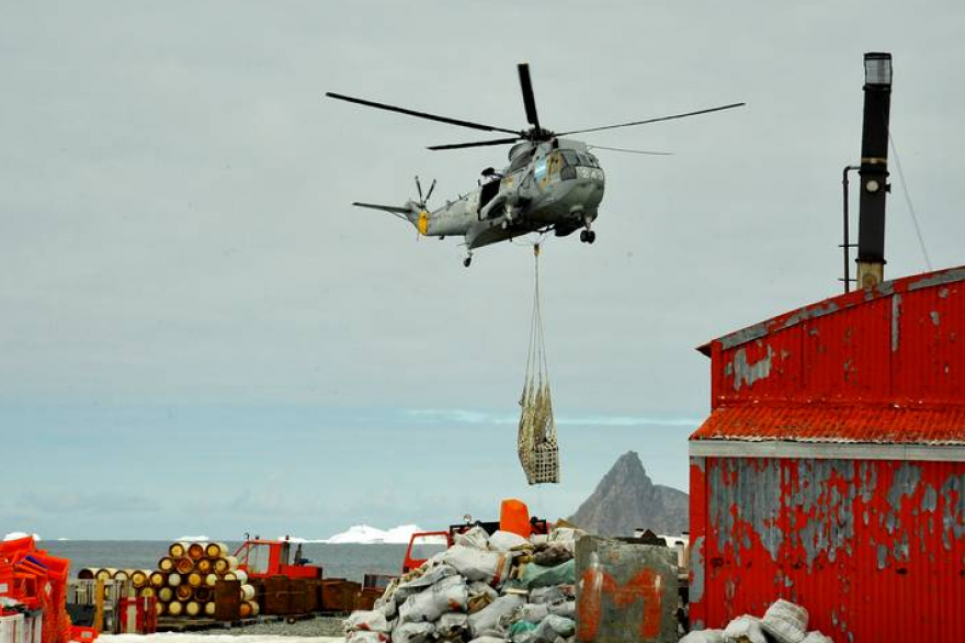 Junto al aviso “Estrecho de San Carlos”, el rompehielos Almirante Irízar trasladó además al Grupo Reparaciones, mientras que las naves Sea King reabastecieron con carga esta base, informó oficialmente el Ministerio de Defensa.