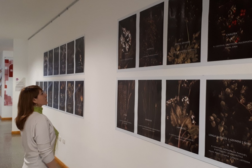 La muestra nos invita a realizar un recorrido por las fotografías de árboles, arbustos, hierbas, líquenes y algas que conforman un catálogo de especies, en una puesta con imágenes de gran formato y la instalación de un herbario, producto del trabajo de recolección guiada por el docente investigador Luciano Selzer del Instituto de Ciencias Polares Ambiente y Recursos Naturales (ICPA) de la UNTDF.