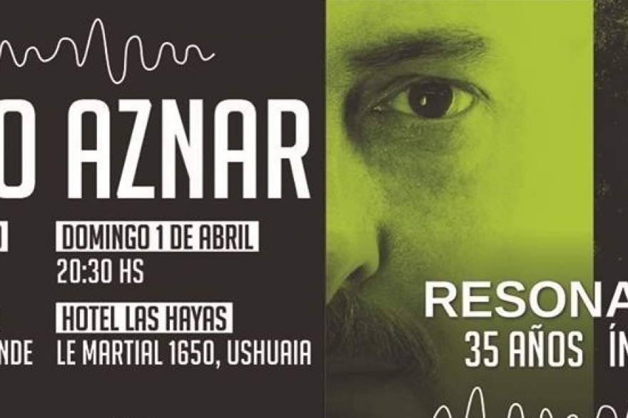 Conmemorando 35 años de carrera solista, Pedro Aznar vuelve a la provincia para ofrecer su nuevo show "Resonancia". Se trata de un recorrido por sus canciones más emblemáticas en formato íntimo. Los shows serán el 31 de marzo en la Casa de la Cultura (Río Grande) y el 1 de abril en Hotel Las Hayas (Ushuaia).